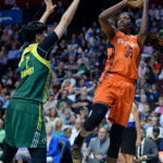 渡嘉敷はWNBA在籍時、ボスニア・ヘルツェゴビナのエース、ジョーンズとのマッチアップを経験。今大会でも楽しみにしているという [写真]=Getty Images