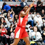続く第2クォーターは開始2分5秒に宮崎早織(ENEOS)が3ポイントでチーム最初の得点を挙げ、髙田や山本も長距離砲を沈めた。中盤以降は朝比奈あずさ(筑波大学)がインサイドで加点すれば、馬瓜や山本、宮崎がアウトサイドから加勢。51-23とリードを大きく広げ、ハーフタイムを迎えた。