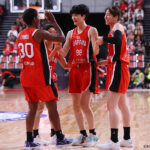 第4クォーターは序盤から林1人で8-0のランを作り、開始1分35秒の時点で100-49。宮崎、町田にも3ポイントが生まれ、的を絞らせない多彩なオフェンスを披露した。攻守ともに最後まで手を緩めず、最終スコア125-57で圧勝。山本の6本を筆頭に、チーム全体で25本の3ポイントを沈めた。
