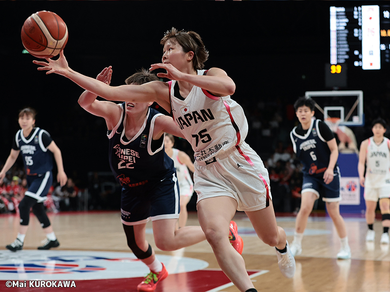 前日行われた第1戦を95-42と圧勝した日本。第2戦は先制点こそチャイニーズ・タイペイに譲るも、宮澤夕貴の3ポイントですぐさま逆転。その後はハードなディフェンスで試合の主導権を握り、第1クォーターを28-11と17点リードで終える。
