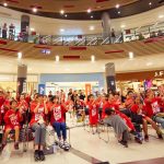 千葉ジェッツ専属ドラムパフォーマーのKATSUNARIが大迫力のドラムパフォーマンスを披露し、その軽快でアップテンポなドラムパフォーマンスに呼応する形で、大人数の