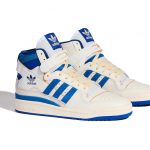 「FORUM 84 HI」は1984年にバスケットボールシューズとして誕生し、ストリートスタイルのアイコンとしても人気を博す「FORUM」のクラシックモデルへのオマージュとなる。ミッドソールのウェイビングや、ソールユニットの赤いピボットポイントなどのアイコニックな要素はそのままに、FORUMの真骨頂であるホワイトとブルーのカラーウェイで登場。また、ブルー一色で表現された「FORUM 84 HI INDIGO」も同日に発売されている。