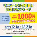●Instagram or Twitter新規フォロー者限定! 次回利用料1,000円(税込)チケットプレゼント