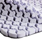 衝撃を吸収するパッドを一つひとつ独立させ、パッド同士の間隔をあけることで、バスケットボールの激しい動きにもしっかりと追従。衝撃吸収力と動きやすさの両立を実現した。