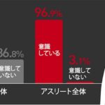 続いて、スポーツを実施するにあたり「シューズのインソール」に対する意識を調査。一般はその重要性を意識しているのは6割以上(63.2%)に対し、アスリートは9割以上(96.9%)という結果に。アスリートにとって「シューズのインソール」は非常に重要なスポーツギアになっていることがうかがえます。