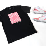 お母さんへの感謝の気持ちを伝えるために、母の日の象徴となるピンク色を配した母の 日仕様のスペシャルギア。野球スパイクとバスケットボールシューズには、母の日に贈られることの多いカーネーションをモチーフにした花柄をあしらわれた。また、限定デザインのTシャツは、様々な言語で「ありがとう」と描かれている。
