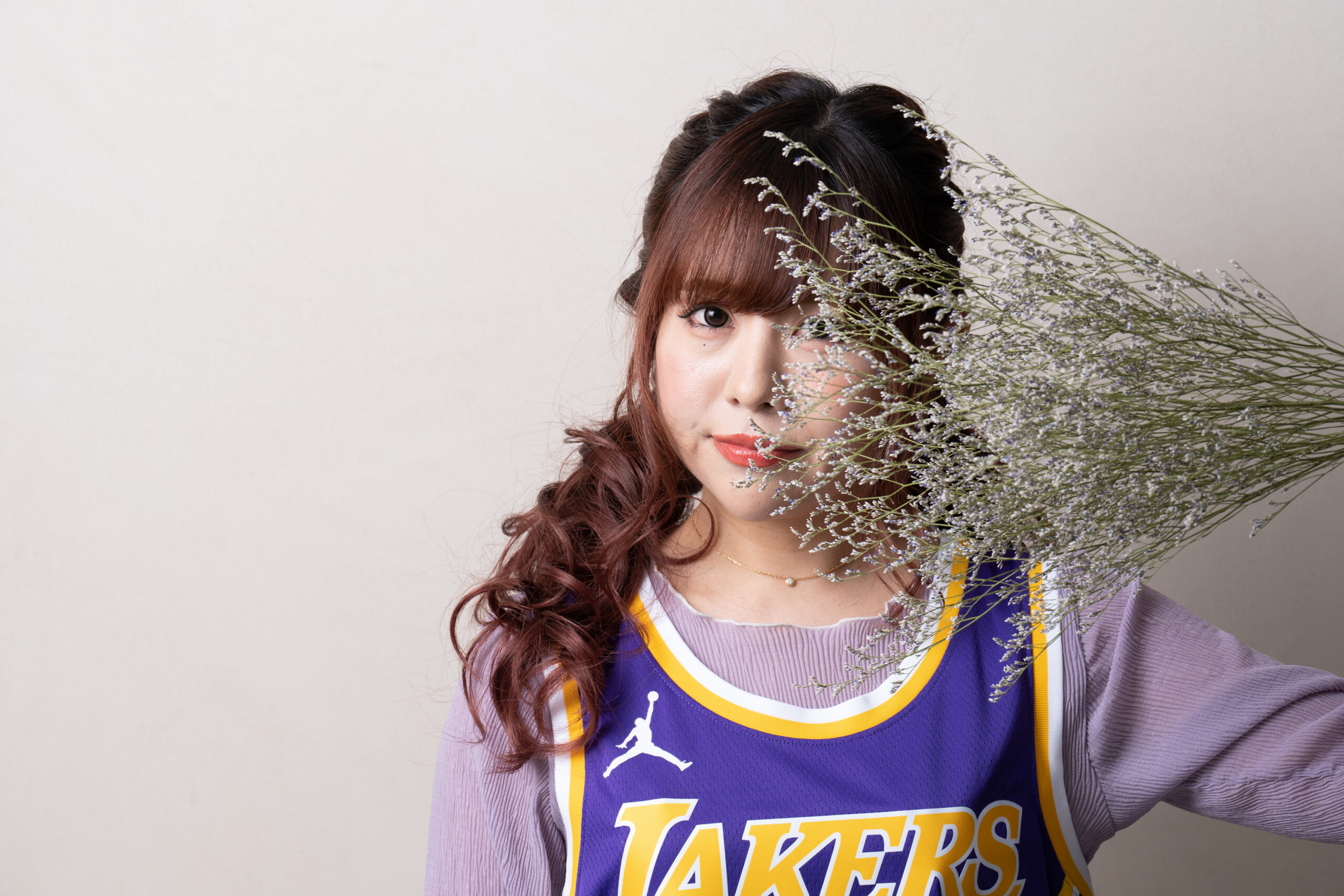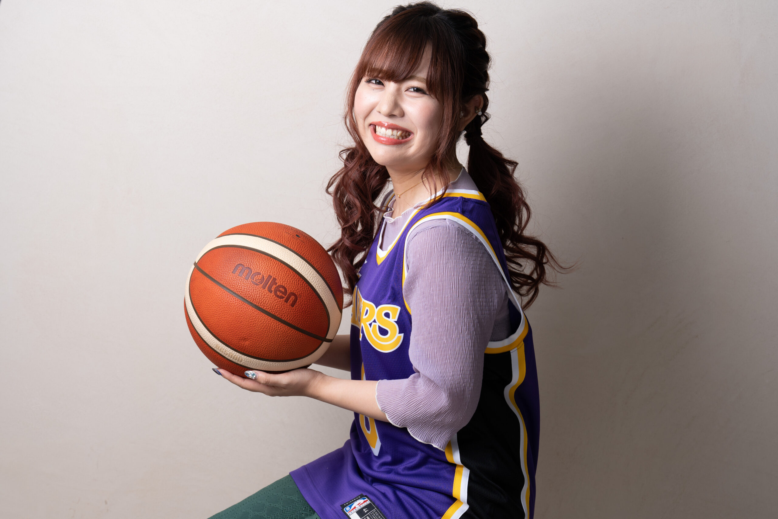 【バスケットボールキング×Pococha】「ファッション企画 撮影モデル決定戦!」を勝ち抜いた「あだ名はりんちゃん」さんが、ロサンゼルス・レイカーズのユニフォームを着て登場!