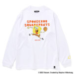 ▷バスケットボールをするスポンジ・ボブやパトリックの長袖Tシャツ、アルファベットになったスポンジ・ボブのロゴTシャツなどをポップでカラフルなカラーリングで展開