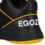 ミッドソールにはEVA(合成樹脂)を採用し、着地時の衝撃を和らげるとともに体への負担を軽減。ヒール部には独自開発の⾼反発素材「EGO DOOON(エゴドーン)」を、アーチ部には高強度・高反発素材プレートを内蔵しており、キレのある動きをサポートする。