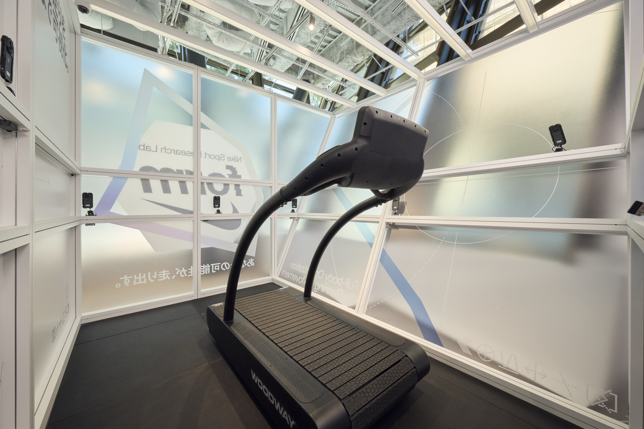 ランニングに力を入れる同店では、ランニング動作分析ツール「NSRL Form」を日本で初めて導入する。世界でもわずか3店舗目となるこのサービスは、トレッドミル上での2分間の走行を6台のカメラで計測し、フォームを解析。その結果に基づいてアプリから最適なトレーニングアドバイスを受けられるほか、自分に合ったフットウェアの提案も行われる。