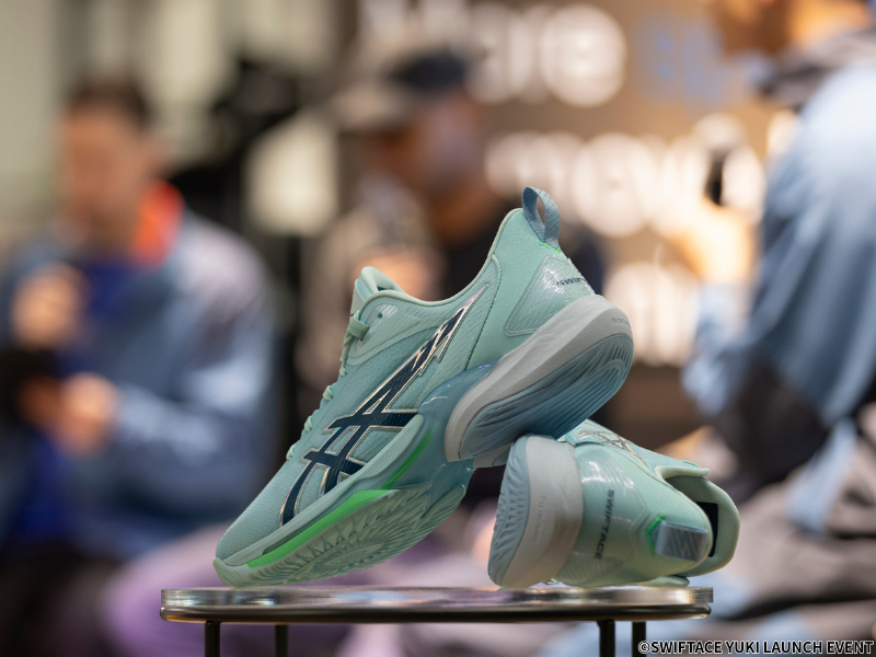 その後は、フリーセッションとなり、『SWIFTACE YUKI』の試着体験も。実際に足を通すと、メッシュアッパーの軽やかなビジュアルとは裏腹に、構造のタフさを感じられた。また、クリス氏やUTA氏も絶賛したトゥの構造も両者のフィードバックと違わず、踏み出しにはランニングシューズを疑うようなスムーズさがあり、移動と姿勢維持への貢献はプレーをせずとも容易に想像できるほど完成度の高い一足だった。