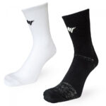 カラーはブラックとホワイトの2色展開で、ソックス背面に大胆にレイアウトした縦ロゴが、スポーティで力強い印象を演出。サイズはS(23-25センチ)・M(26-28センチ)・L(28-30センチ)と、幅広く対応している。