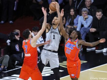 ■「チーム一丸でやり遂げた」スパーズがサンダーを撃破 12月14日(現地時間13日、日付は以下同)にネバダ州ラスベガスにあるTモバイル・アリーナで行われた「エ···