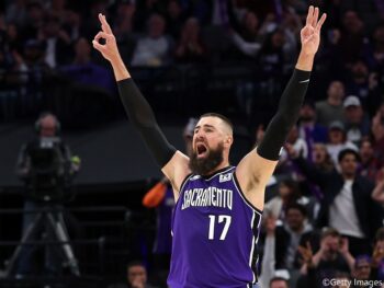 7月14日(現地時間13日)に成立したデンバー・ナゲッツとサクラメント・キングスのトレードにより、ナゲッツに移籍加入することになったヨナス・バランチュナス。一···