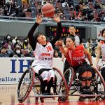 丸善インテックス大阪で行われた「国際親善女子車いすバスケットボール大阪大会」(大阪カップ)最終日の16日、日本はカナダとの第2戦に臨んだ。世界選手権5位、昨年のアメリカ選手権で優勝した強豪相手に、日本は前半リードを奪って試合を折り返した。しかし、後半に逆転を許し、53-63で敗退。日本は4戦全敗を喫し、3位。1位は全勝したカナダで、そのカナダに連敗を喫したイギリスが2勝2敗で2位となった。
