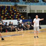 勝浦 今日はウィスマンコーチにマンツーマンディフェンスについて講習を受けました。よく最近言われてるディナイに関して、高校生はよく裏を取られてしまうのですが、その原因がよくわかりました。間違ったポジションにいるからなのです。ウィスマンコートに教わった方法をとれば、ボールマンとマークマンを自分の視界に入れることができるので、よりレベルの高いディナイディフェンスができるようになることがわかりました。
