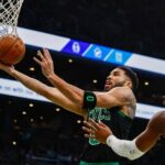 前半はセルティックスの勢いが止まらない。17得点のテイタムを筆頭に、ベテランセンターのアル・フォーホードが12得点、ジェイレン・ブラウンが10得点と援護陣も盤石の体制を取り、65-48で折り返した。