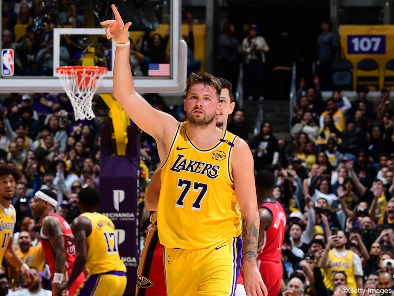 ペリカンズ戦でレブロンの記念すべき得点をアシストしたドンチッチは、19得点を挙げたジャクソン・ヘイズのダンクを何度もお膳立て。ガードとしてチームメートを活かしつつ、13本の3ポイントを含むフィールドゴール19本試投と、積極的に得点も狙った。フリースローは11本6本の成功とやや低調。それでも、デビュー9試合目にして、レイカーズの歴史に名を刻んだ。
