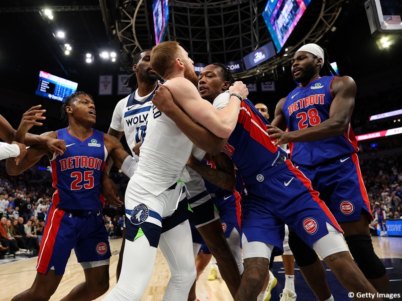 3月31日(現地時間30日)にミネソタ州ミネアポリスのターゲット・センターで行われたミネソタ・ティンバーウルブズvsデトロイト・ピストンズの一戦で起きた大乱闘。この乱闘に関わった選手へのペナルティ処分が4月2日に発表された。