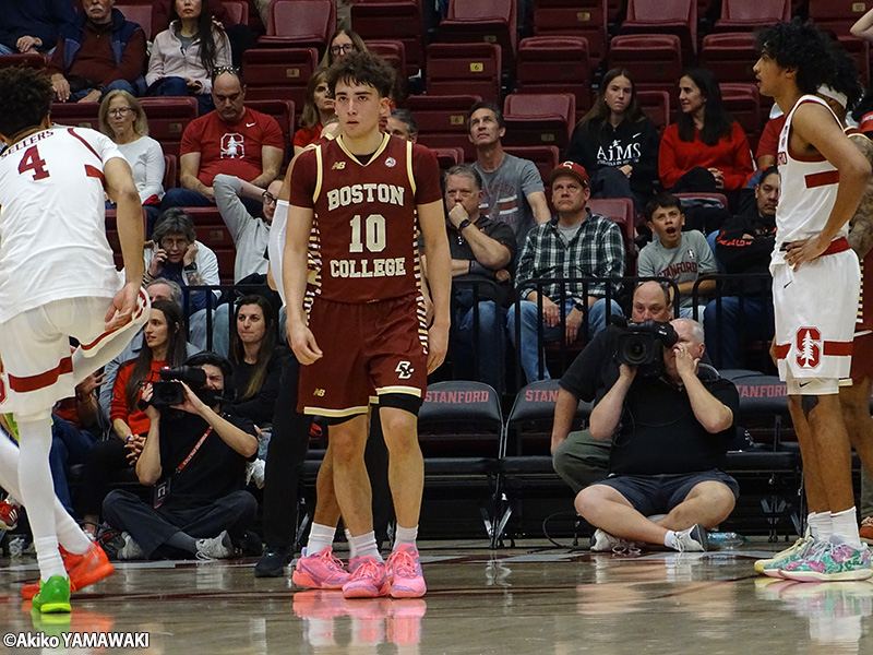 テーブス流河の米大学1年生のシーズンが終わった。全米大学体育協会(NCAA)1部(以降DI)の中でも指折りのカンファレンス、アトランティックコースト・カンファレンス(ACC)に所属するボストンカレッジで、31試合のうち24試合に出場、1試合平均8.5分の出場で1.6得点1.2アシスト。だが、2月27日(現地時間2月26日)のスタンフォード大学戦で後半11分出場して5得点2アシスト1リバウンド1スティール。相手はまだ主力がプレーしていたが、テーブスは自らが出場中に24点差から14点差に追い上げたチームに貢献した。