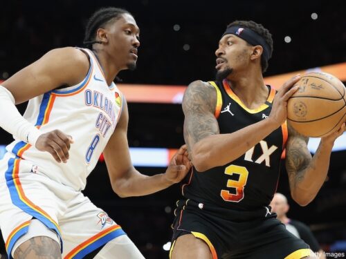 フェニックス・サンズはホームのフットプリント・センターで1位のオクラホマシティ・サンダーに挑んだ。5点リードで迎えた第3クォーターに43得点を与えると、そのままリードを奪い返せず112-125で敗戦。プレーイン・トーナメント進出争いから姿を消した。