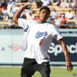 現地時間2023年7月8日にドジャースタジアムで始球式を務めた八村塁[写真]=Getty Images