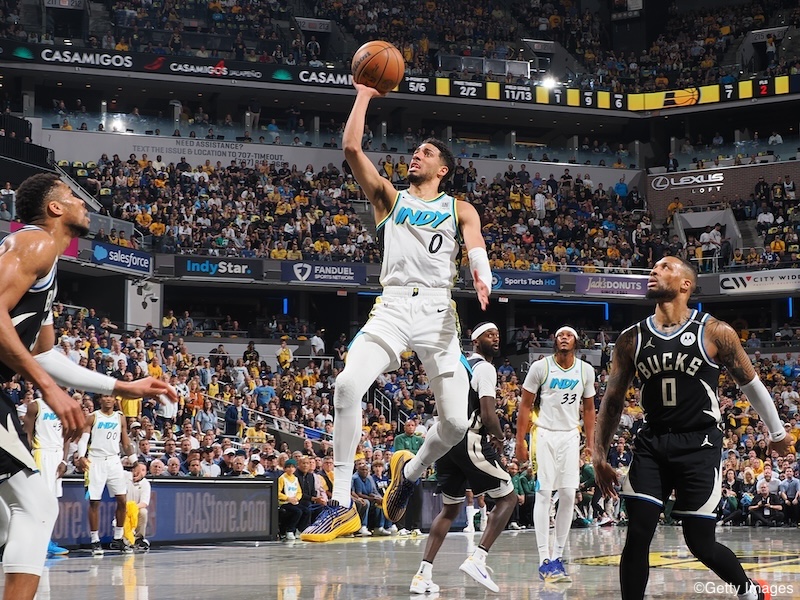 4月23日(現地時間22日)に「NBAプレーオフ2025」イースタン・カンファレンス1回戦第2戦が行われ、4位のインディアナ・ペイサーズがホームのゲインブリッジ・フィールドハウスで5位のミルウォーキー・バックスと対戦した。