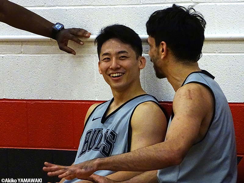 NBA2年目のシーズンに向けて、シカゴ・ブルズの一員としてサマーリーグに参加することになった河村勇輝。ブルズで練習を始めて1週間ほどだと言うが、練習後にはいつもの「勇輝スマイル」が見られ、楽しそうだ。