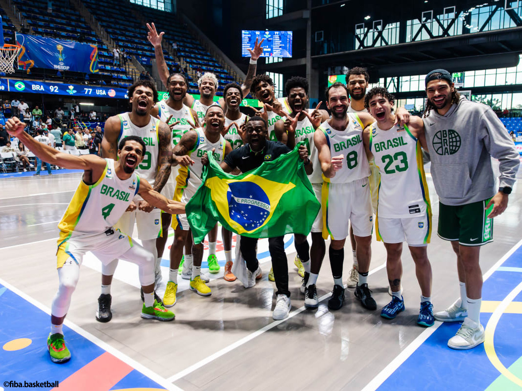 アメリカを破り勝利に沸くブラジル代表 [写真]=fiba.basketball