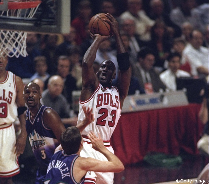 キャリア初期には足首捻挫を抱えながらプレーしてきたことも明かしたジョーダン。1997年のNBAファイナル第5戦では体調不良の中でブルズを引っ張り、38得点をマークして勝利へ導いた。