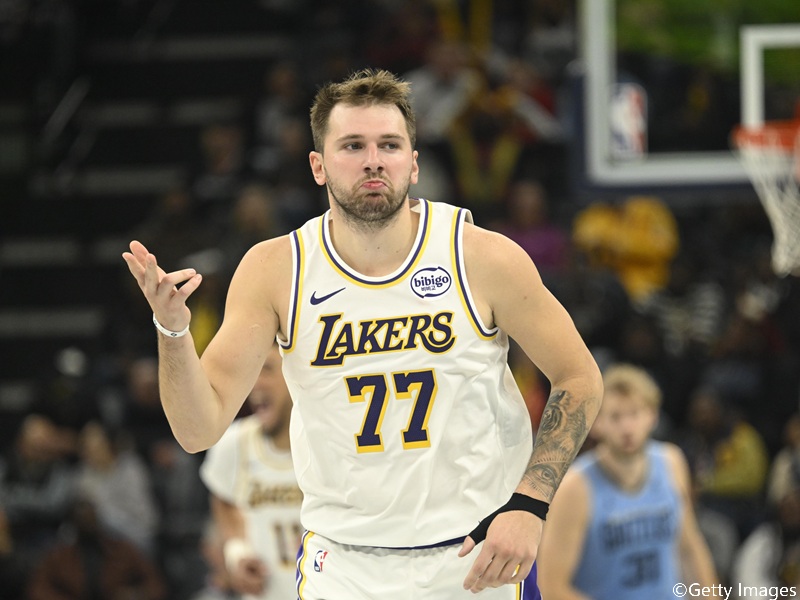 レイカーズはアウェーで最大15点ビハインドを背負い、15度もリードが入れ替わった試合で、ドンチッチがペイントエリアからレイアップやフローター、ショートジャンパーで効果的に加点したほか、流麗な動きから3ポイントシュートを計6本も放り込み、最終スコア117-112で勝利。