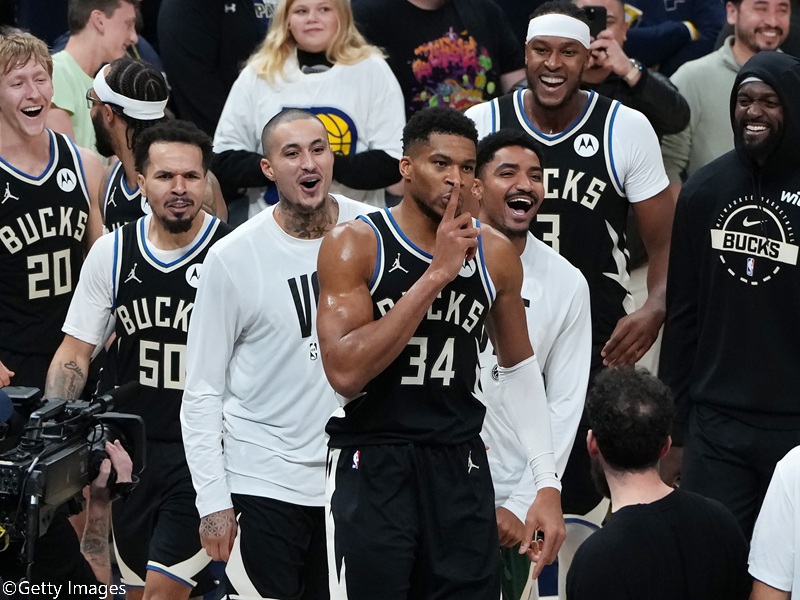 するとバックスは、タイムアウト明けのポゼッションで大黒柱ヤニス・アデトクンボへ託す。左エルボーエリアからニスミスを振り切り、アイザイア・ジャクソンのコンテストを交わし、試合終了間際に放ったフェイダウェイジャンパーがブザービーターで決まり、117-115で劇的勝利を収めた。