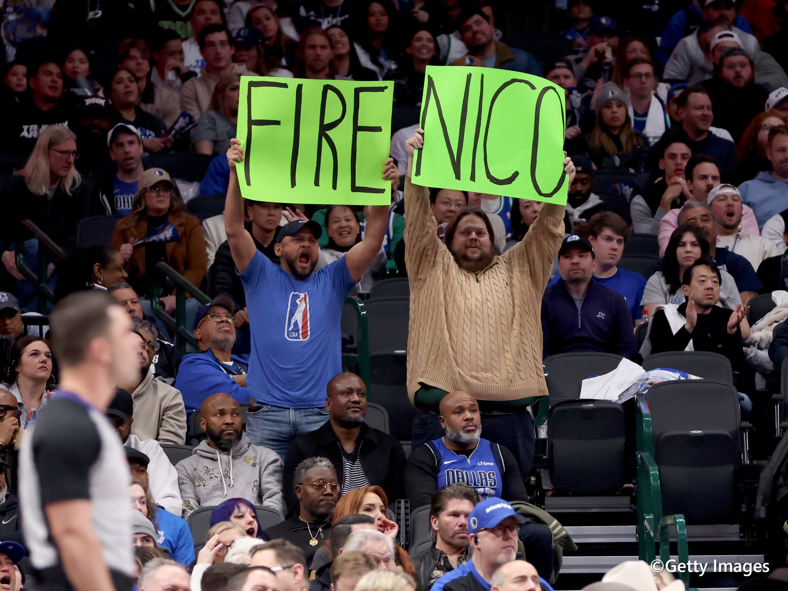2月にドンチッチのトレードが報じられた翌朝、マブスのファンは本拠地であるアメリカンエアラインズ・センター前で抗議デモを行い、“模擬葬儀”が行われる事態にまで発展した。マブスのホームゲームでは「Fire Nico(ニコ・ハリソンを解雇しろ)」というチャントが上がり、その声はシーズンを通して止むことはなかった。
