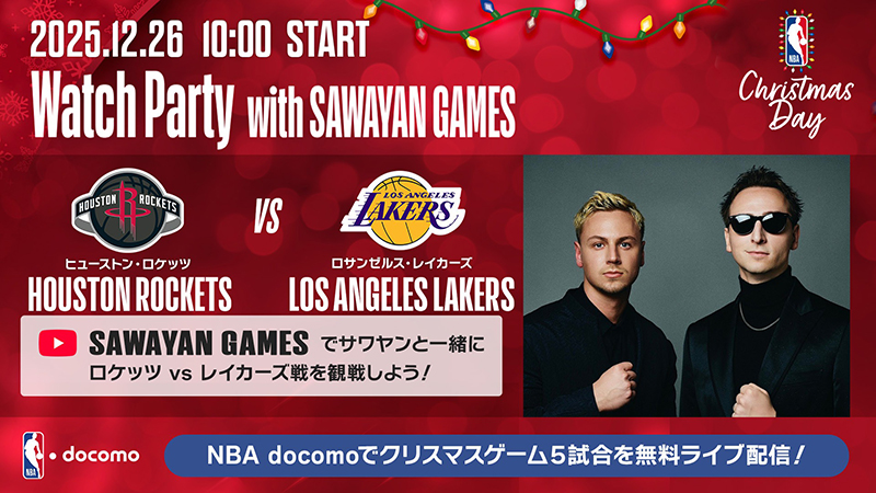 NBA docomoでは、2025年の「NBAクリスマスゲーム」5試合すべてを日本語実況・解説付きで無料配信する。本稿では配信をより楽しむために、八村のこれまでの激闘と名門レイカーズにおける「クリスマスの英雄たち」の系譜を紹介する。