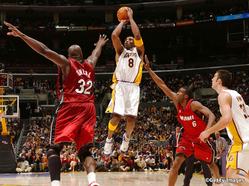 特に、前シーズンまでの相棒だったシャキール・オニール擁するマイアミ・ヒートと対戦した2004年の試合では、オーバータイムまでもつれ込む激闘の中で約50分間出場し、1人で42得点を記録する脅威的なパフォーマンスを披露した。
