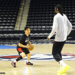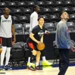 何かいいことでも起こりそうな青空が朝から広かった16日(現地時間15日)、カリフォルア州オーシャンサイド市にあるロサンゼルス・クリッパーズ傘下のサンディエゴ・クリッパーズのアリーナで、河村は声を出し、元気にボールを追った。試合を想定した連携プレーで河村がコーナーから3ポイントシュートを決めると、同じ2way契約のエマニュエル・ミラーが、日本人メディアの方を見て、「ユウキ!」とうれしそうに頷く。河村自身も自らが持っていたタオルを冗談でコーチの一人の肩にかけるなど茶目っ気たっぷりだ。