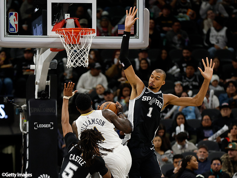 2シーズン連続のブロック王に、いよいよDPOY(最優秀守備選手賞)受賞のときが近づいているかもしれない。ウェンバンヤマは、14試合の欠場とプレータイムの制限がありながら、ディフェンスのネットポイント総量でリーグ最多の数値を記録している。