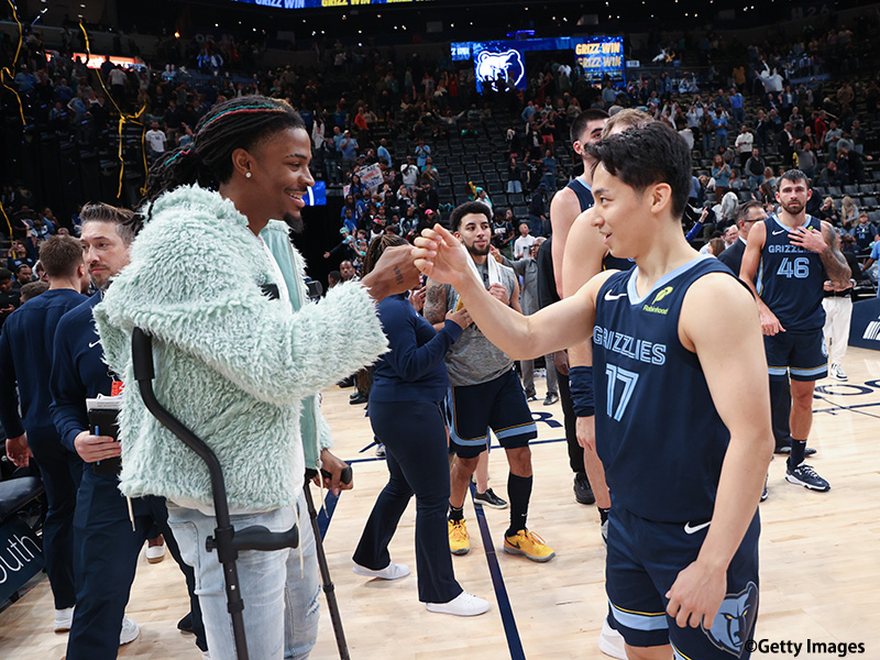 日本時間2月1日(現地時間1月31日)、シカゴ・ブルズの河村勇輝が敵地カセヤ・センターで行われたマイアミ・ヒート戦に出場した。血栓症という選手生命を揺るがす困難を乗り越え、ついに今シーズン初出場を果たした河村だが、このカムバックに誰よりも早く反応したのが、昨シーズンまでメンフィス・グリズリーズでチームメートだったジャ・モラントだった。