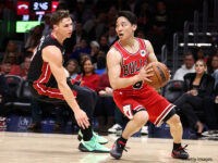 第2クォーターは6点リードで迎えた開始5分13秒から0-7のランを許したものの、ビンセントの3ポイントですぐさま逆転。56-52で試合を折り返し、前半終了時点でドンチッチが18得点7リバウンド、エイトンが11得点、レブロンが10得点、八村が9得点をマークした。