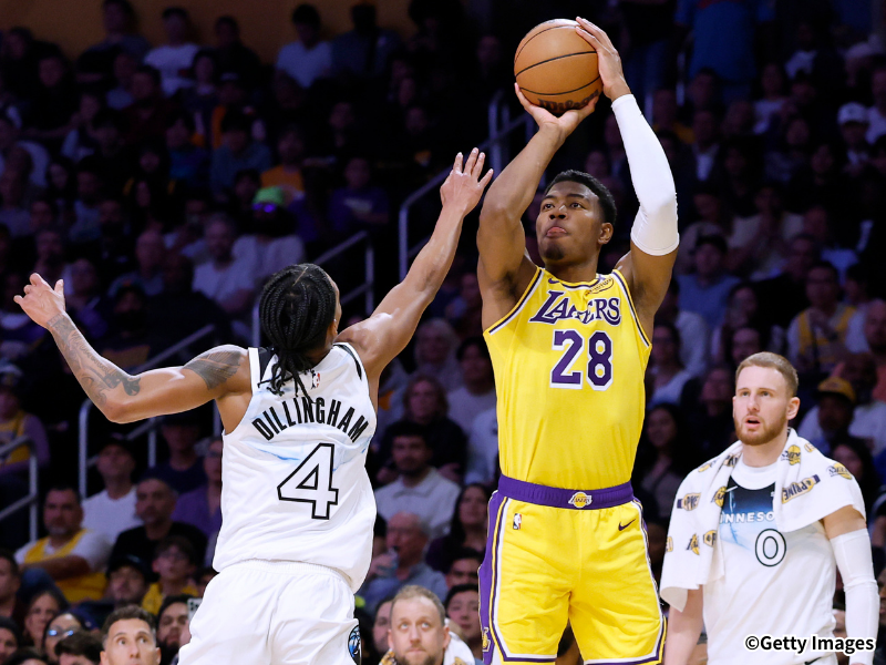 ロサンゼルス・レイカーズ在籍4年目を迎え、3ポイントで好調を見せている八村塁。『STAT MUSE』は、レイカーズでの3ポイント成功数で歴代20位にランクインしたと紹介している。