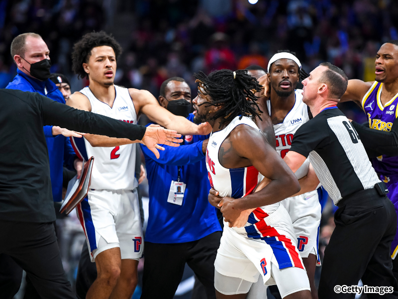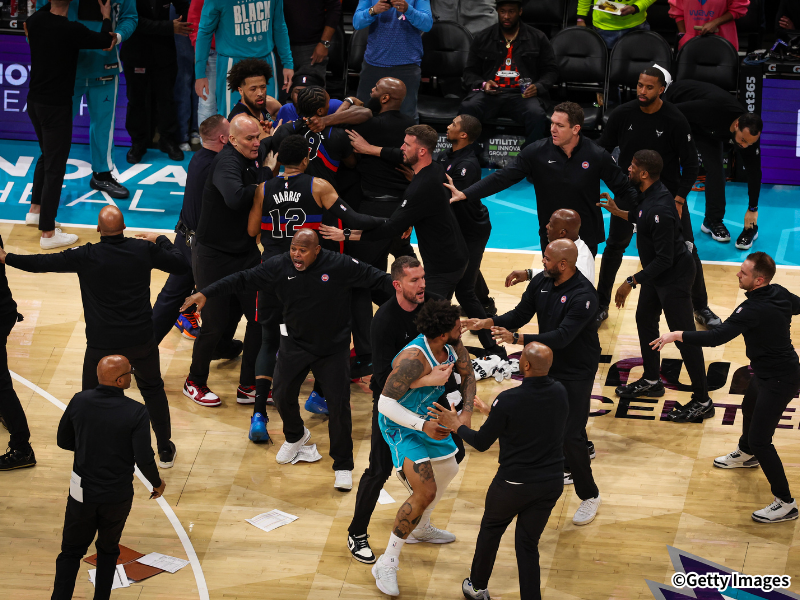 だが、2月10日(現地時間9日)に行われたシャーロット・ホーネッツとの一戦は、試合中に大規模な乱闘に発展した。ジェイレン・デューレンがムーサ・ディアバテと衝突すると、それを見たマイルズ・ブリッジズがデューレンに殴りかかる。だが、それを見たアイザイア・スチュワートは仲間の身の危険を察知し、ベンチから飛び出してブリッジズに猛突進。セキュリティや関係者は総出で2人を引き剥がすこととなり、事態は何とか収束に至った。