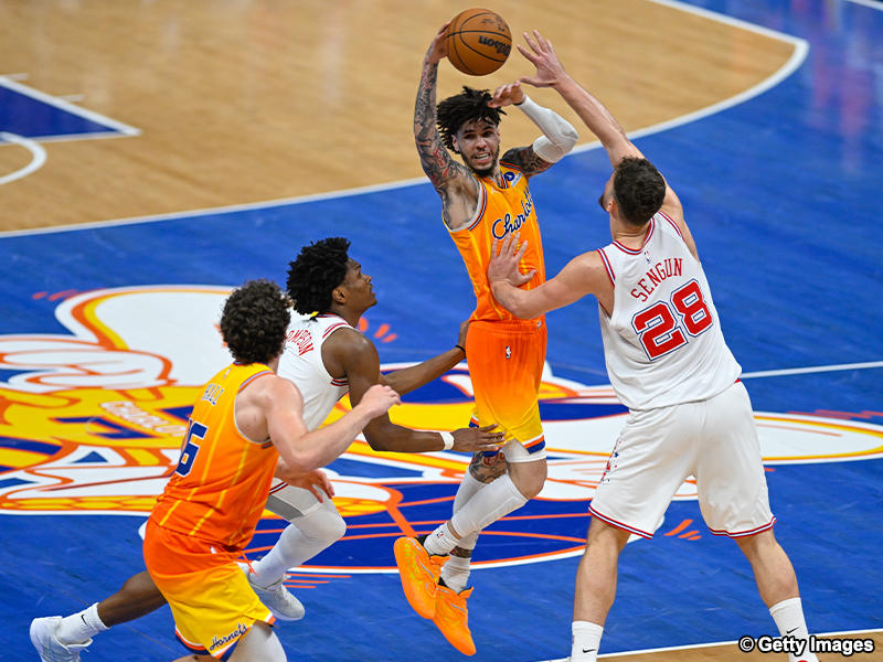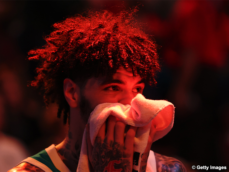 事故から一夜明けロケッツ戦に出場したラメロ・ボール[写真]=Getty Images