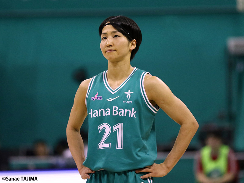 「ボールがないところの動きを自分の長所としてやってきていたので、BNKではそれを中心にやっていたし、チームからも求められていました。でも、ハナ銀行では、ボールを持って得点を取ることを求められているので、得点にはこだわっていますし、責任を持って取り組まないといけないとシーズン前から考えていました。今は2ケタ得点をコンスタントに取るということを意識しています」