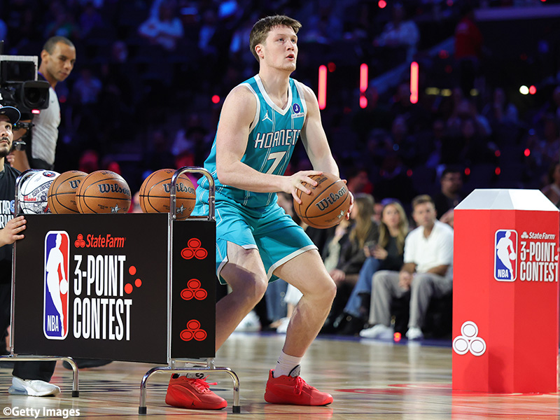 吉澤 ポイントコンテストで最初から27点を叩き出した、ルーキーのコン・カニップル(シャーロット・ホーネッツ)選手です。20歳の若さであの舞台に立ち、しょっぱなからあそこまで決めきれるメンタルには脱帽しました。しかも、ただ決めるだけでなく、後から打つ先輩たちに対して「これを超えてみろ」と言わんばかりの圧をかけていく姿がすごかったです。