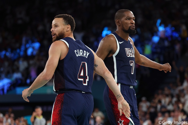 パリ五輪で共演したカリー(左)とデュラント(右)[写真]=Getty Images