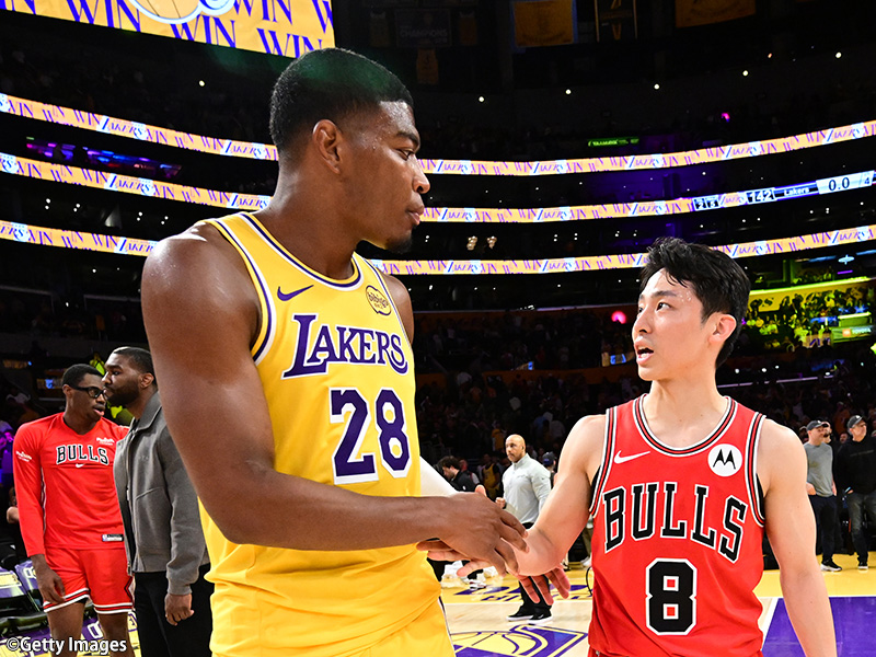 このクリッパーズ戦を最後に河村も同行したブルズは、9日間で5試合の西海岸遠征を終えた。悔しさと手応えとが日々変動して訪れる中で一つ河村を笑顔にしたことが、血栓による戦線離脱中、自らを励ましてくれた八村との再会、そして初めて同じコートに立ち、マッチアップもしたことだ。