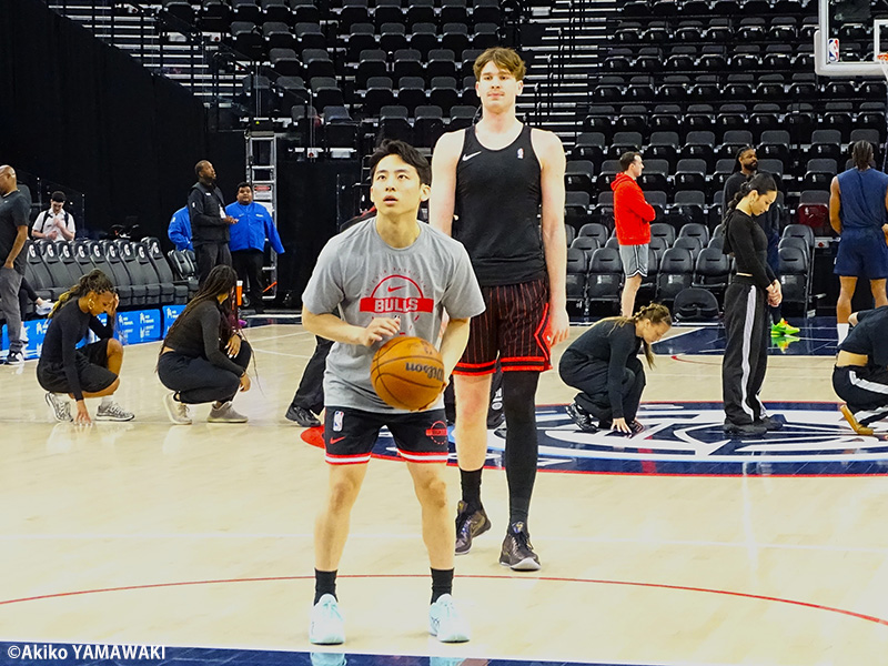 それだけに、レイカーズ戦を夜に控えて「今、チームの状況としてポイントガードが多いですし、ほとんどのポイントガードが今日も出場すると思うので、そうなると出場機会も簡単ではない」と河村。それでも「何が起こるか分からないので。ファウルトラブルだったり、何か緊急事態になった時に、またコーチがプレータイムを与えてくれた時には、しっかりとプレーして信頼を積み重ねていきたい」。「監督との信頼関係みたいなところは、試合に出てプレーするたびに深まっていると思っています」と前向きな姿勢は崩さなかった。