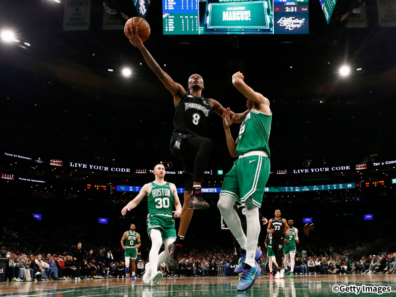 3月23日(現地時間22日、日付は以下同)に敵地TD・ガーデンで行われたボストン・セルティックス戦。ミネソタ・ティンバーウルブズは、オールスターガードのアンソニー・エドワーズが膝のケガで戦線離脱する中で、102-92で勝利を収めた。