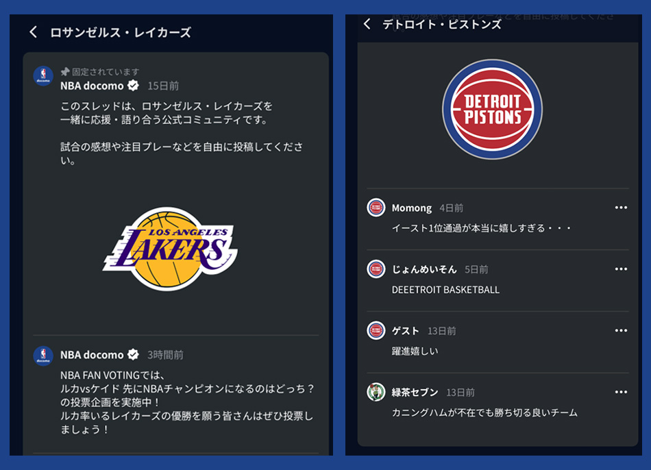 ▼NBA docomoのコミュニティ機能を使ってファン同士で盛り上がろう!
