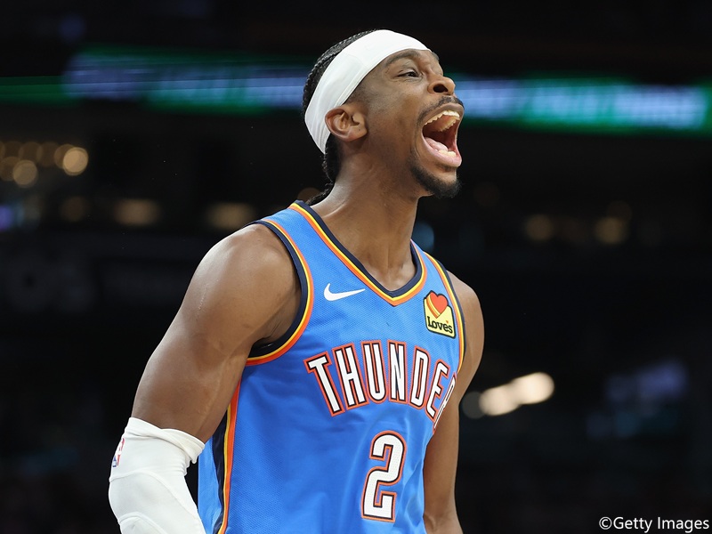 なかでもSGAは、昨年のカンファレンス・ファイナル第4戦でミネソタ・ティンバーウルブズ相手に奪った40得点を上回り、プレーオフキャリアハイを更新。ペイントエリアからミッドレンジ、3ポイントシュートも沈めた男は、フィールドゴール18本のうち15本も決めて成功率83.3パーセントをマーク。